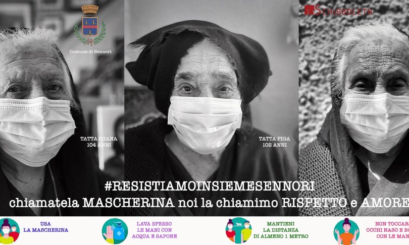 I volti, coperti dalla mascherina, di Giovanna Ogana, 104 anni, Antonina Piga, 102 anni e Giacomina Fois, 98 anni, compaiono nelle immagini della campagna e nei manifesti che saranno affissi per le strade del paese, per invitare gli abitanti del paese a rispettare le regole di base per evitare la diffusione del virus: usare la mascherina, lavarsi spesso le mani con acqua e sapone, mantenere la distanza di sicurezza di almeno un metro, non toccarsi il viso con le mani. “Chiamatela mascherina, noi la chiamiamo Rispetto e Amore”, è il messaggio che accompagna le immagini.