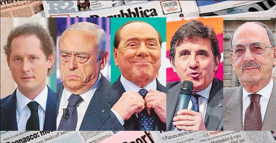 Ben noti sono poi i casi del Sole 24 Ore, espressione di Confindustria, e della famiglia Berlusconi, che attraverso Fininvest controlla Mediaset, Il Giornale, decine di riviste e diverse radio, tra cui R101 e Radio 105. Da tempo pare che Urbano Cairo, editore di La7 e di Rcs (Corriere della Sera) debba seguire le orme di B., cercando fortuna in politica dopo averla trovata sui media e nel mondo del calcio. L’idea potrebbe tornare di moda.