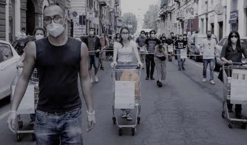 Tutti servizi questi garantiti dall’altra parte della cittadinanza cui è stato imposto il “sacrificio” in cambio della pagnotta, martiri sanitari, ma pure eroi forzati nelle trincee dei supermercati, dei magazzini di Amazon, delle produzioni industriali essenziali, alcune altre convertite dal superfluo all’inutile sotto forma di mascherine delle quali non è stata accertata l’esigenza, pony e facchini, donne delle pulizie mobilitate per il business delle disinfezioni, milioni di persone delle quali abbiamo perso il conto, stipate nelle metro e nei bus, dove il “distanziamento” salvifico aveva carattere “volontario” e discrezionale.