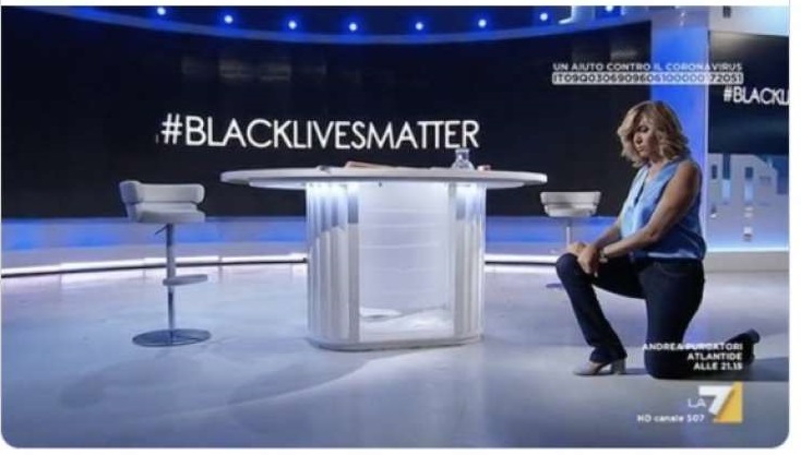 Myrta Merlino, conduttrice de L’ Aria che tira, s’ è inginocchiata in trasmissione, mentre lo schermo alle sue spalle s’ oscurava e lasciava leggere soltanto #blacklivesmatters, con un’ aria solenne da sacerdotessa della gravità. Notevole, anche se non quanto la recita dell’ Eterno riposo di Barbara D’ Urso – certe vette restano imbattibili, ed è giusto così, trattandosi di sacro.