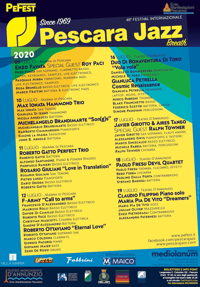 Quest’anno il Pescara Jazz, sempre di levatura internazionale, sarà100% Made in Italy. “Abbiamo sfruttato le regole vigenti in tema di Covid19 per dare risalto ai migliori talenti italiani e regionali”, ha aggiunto Valori.