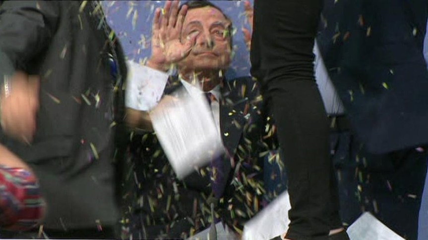Evidentemente non è nel suo carattere, o è stato abituato alla troppo comoda comunicazione scritta, ai tavoli degli interventi ufficiali della Banca d’Italia e della Bce. Il taciturno Draghi s’è finora ritagliato un personaggio al servizio di poteri privati o pubblici a cui non serve parlare con la gente, con i reali destinatari delle sue decisioni. La sua competenza sta in questo: essere ritenuto affidabile da coloro che lo hanno scelto. E l’ottimo e capace Marione, che parla poco e sorride appena, affida la valutazione corrente delle sue abilità al suo vivere schivo, defilato, a una moglie che s’intromette nelle sparute relazioni con la stampa. Se non fosse stato per quell’ inaspettato assalto della Femen, subìto sul tavolo della conferenza e che per un attimo gli ha allarmato l’espressione del viso truce, avremmo pensato che il suo sorriso sornione fosse di plastica.