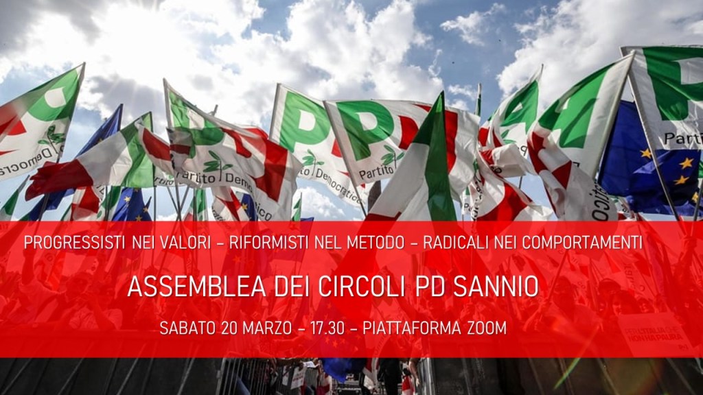 Si terrà nella giornata di domani, sabato 20 marzo, da remoto, l’assemblea dei Circoli del Partito Democratico del Sannio per accogliere l’invito del neoeletto segretario nazionale, Enrico Letta, ad avviare un percorso di consultazione e discussione sulle idee e le forme del nostro «stare insieme» finalizzato a ricostruire-rigenerare un PD all’altezza delle sfide che il tempo presente impone.