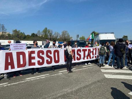 Sono un centinaio, li controlla uno schieramento di polizia tre volte superiore. Si sono radunati ristoratori, ambulanti e commercianti arrivati a Bologna per gridare il loro «ora basta» com’è scritto sullo striscione in testa al sit-in.