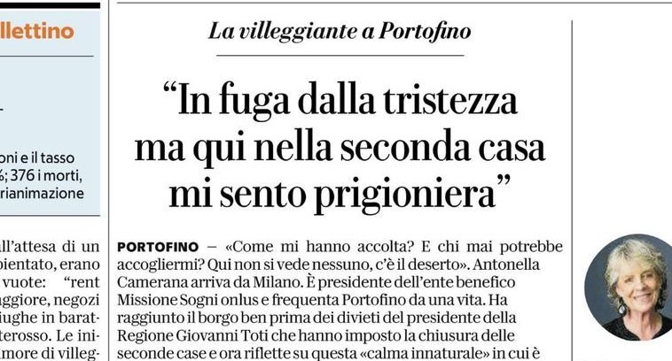(Massimo Minella – la Repubblica) – «Come mi hanno accolta? E chi mai potrebbe accogliermi? Qui non si vede nessuno, c’è il deserto». Antonella Camerana arriva da Milano. È presidente dell’ente benefico Missione Sogni onlus e frequenta Portofino da una vita. Ha raggiunto il borgo ben prima dei divieti del presidente della Regione Giovanni Toti che hanno imposto la chiusura delle seconde case e ora riflette su questa «calma innaturale» in cui è piombata Portofino, con una piazzetta spettrale, come non era mai accaduto prima.