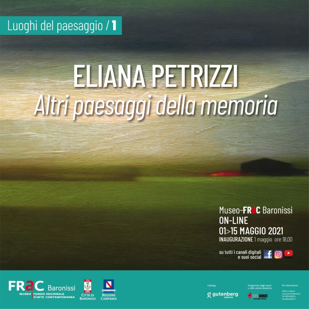 Sabato 1 maggio alle ore 18.00, verrà inaugurata la mostra di Eliana Petrizzi “Altri paesaggi della memoria”, sui canali digitali del Museo FRaC, del Comune di Baronissi e della Gutenberg Edizioni, la rassegna LUOGHI DEL PAESAGGIO .