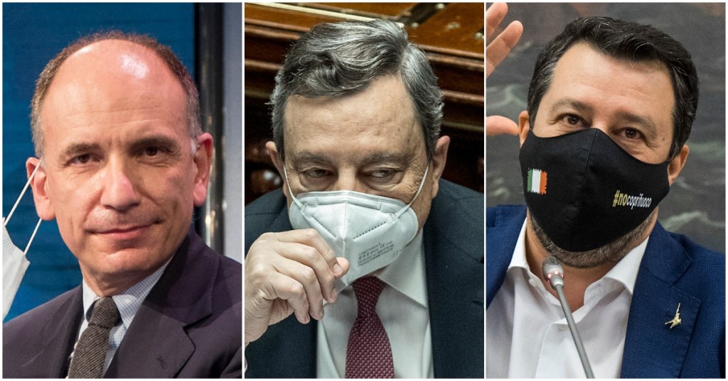E non ne ha alcuna intenzione (certi miracoli, tipo stare al governo avendo perso le elezioni, càpitano una volta nella vita, e per il Pd è già la sesta in dieci anni). Anche perché né Salvini né Draghi lo rincorrerebbero. Quindi Letta continuerà a chiedere a Salvini di uscire dal governo e a restare al governo con Salvini, riuscendo persino a farlo apparire più coerente di lui. Sennò rischia di regalare Salvini a Draghi.