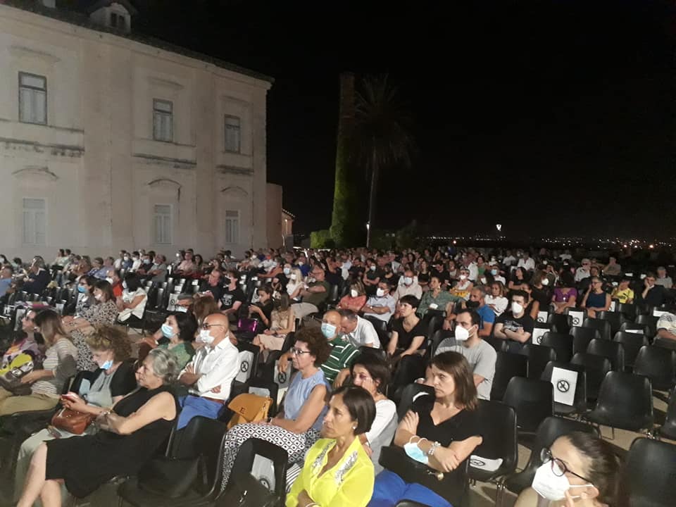 Tanta emozione ieri al Belvedere di San Leucio in occasione della serata inaugurale di VANVITELLI SOTTO LE STELLE, la rassegna cinematografica nata tre anni fa da un’idea di Confcommercio Caserta e realizzata in collaborazione con il Comune di Caserta. Sei serate di grande cinema con la direzione artistica di Francesco Massarelli che proseguiranno fino al prossimo 12 settembre. ‘Qui al Belvedere non si proiettavano film da quasi trent’anni – ha annunciato Massarelli in apertura di serata – ripartire con una platea così numerosa non può che essere un segnale di grande speranza e fiducia per il mondo del cinema’. Primo ospite in cartellone l’attore Tony Laudadio che ha ricevuto il Premio Impresa&Cultura Confcommercio Caserta. Un riconoscimento al talento e alla professionalità dell’artista che con il suo lavoro ha dato lustro alla città ma anche un plauso per la scelta di continuare a vivere nella sua terra di origine contribuendo così alla sua crescita culturale. ‘Sono onorato di questo premio – ha detto Tony Laudadio durante il suo intervento – e sono fiero di essere un cittadino casertano. Questa città mi ha dato tanto e mi sento in dovere di ricambiare’. All’attore un quadro raffigurante il Belvedere di San Leucio realizzato dall’artista Alessandro Ciambrone. Oltre 350 le persone presenti in platea che hanno riso di gusto dinanzi al contributo video dell’attrice e comica Aurora Leone, assente per motivi di lavoro. ‘Sarò lì con voi tra qualche settimana – ha annunciato nella clip proiettata sul grande schermo – mi raccomando non sostituitemi subito con qualcun altro e non dategli il mio premio’ – ha concluso, scherzando, la Leone.
