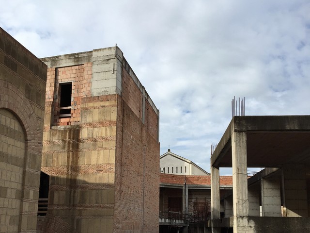 L’edificio è incompleto: c’è solo lo scheletro in calcestruzzo armato, da decenni esposto alle intemperie. La superficie lorda coperta è di circa 2.000 mq, distribuita su tre piani oltre ai garage. La posizione sembra eccezionale, ma non lo è: l’esposizione dei lati lunghi è men che mediocre (sul cortile di un palazzo privato e su uno slargo interno all’edificio pubblico), il traffico davanti al Duomo e su via Pasquali è caotico, la disponibilità di parcheggi in zona limitatissima; l’aria è piuttosto inquinata, la distribuzione interna problematica.