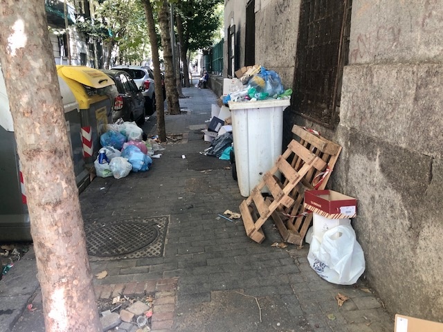 ” Il top si raggiunge in via Francesco De Mura, nei pressi del plesso scolastico “Vanvitelli” – puntualizza Capodanno -. Qui i rifiuti addossati alle campane e al muro posto a confine con l’edificio scolastico sono tantissimi, al punto da costituire una vera e propria minidiscarica, rendendo impossibile il passaggio dei pedoni, anche per lo sgradevole olezzo e per la presenza d’insetti. In mezzo a sacchi di rifiuti abbandonati sul marciapiede si notano anche molti imballaggi di cartone e dei bancali in legno. Un altro cumulo di rifiuti si osserva all’interno della recinzione che da mesi circonda l’albero della fitolacca in piazza degli Artisti. Ma quelle indicate sono solo alcune delle criticità che sono emerse rispetto a un problema che, nell’area collinare della città, si manifesta da tempo, senza che si assumano i provvedimenti del caso “.