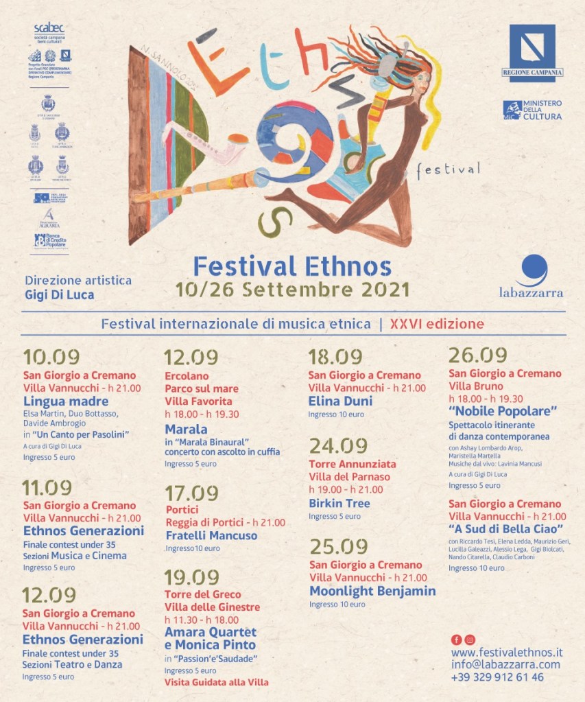 La world music ai piedi del Vesuvio. Dal 10 al 26 settembre 2021 torna Ethnos, festival internazionale di musica etnica, ideato e diretto da Gigi Di Luca.