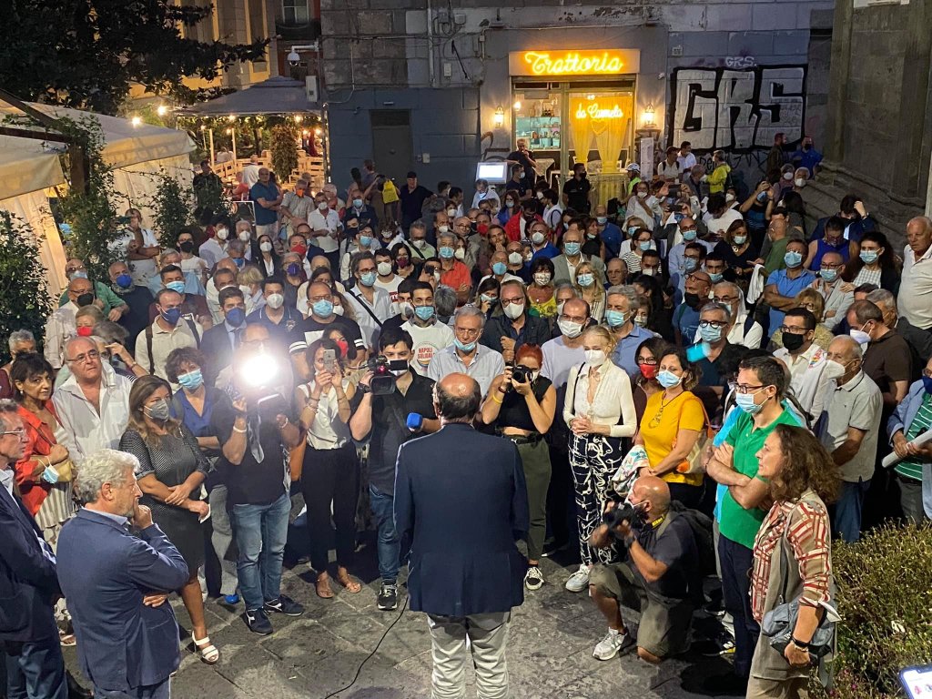 (ildesk.it) – Meno di 30 persone hanno partecipato a Napoli al comizio promosso da Liberi e Uguali e da Napoli Solidale con Pierluigi Bersani e il candidato sindaco Gaetano Manfredi e alla lista Napoli Solidale. C’erano più giornalisti che militanti e simpatizzanti. L’iniziativa, dal titolo “Quello che ci unisce“, si è tenuta a piazzetta Pietrasanta (angolo via dei Tribunali). Oltre a Bersani e a Manfredi, sono intervenuti l’ex sottosegretario al ministero dell’Università e della Ricerca Peppe De Cristofaro, i candidati al Consiglio comunale Mario Coppeto, Anna Starita e Sara Fariello e il candidato al Consiglio della Municipalità 4 Mariano Ferrara.