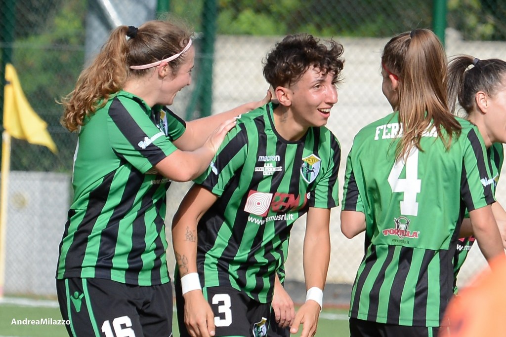 Le neroverdi passano in vantaggio al 18′ grazie a Giuliani brava a freddare Dilettuso da pochi passi sull’invitante pallone messo al centro da Giada Di Camillo.