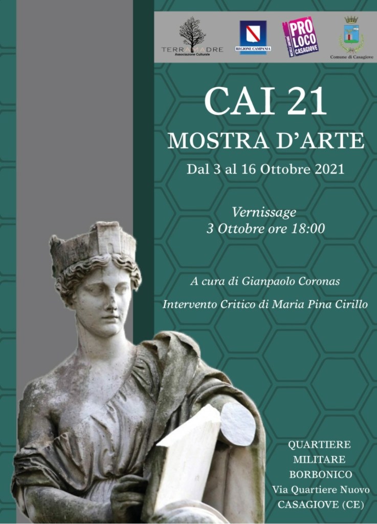 Si terrà domenica 3 ottobre 2021, alle ore 18.00, presso il Quartiere Militare Borbonico di Casagiove (CE), il vernissage della mostra d’arte collettiva “CAI 21”.