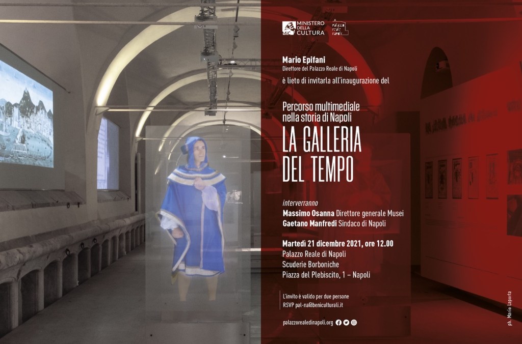 Domani, 21 dicembre 2021, si inaugura “La Galleria del Tempo”, un percorso multimediale nella storia di Napoli che amplia l’offerta culturale del complesso di Palazzo Reale con nuovo spazio espositivo di 1800 metri quadrati allestito nelle suggestive Scuderie Borboniche, restaurate per l’occasione.