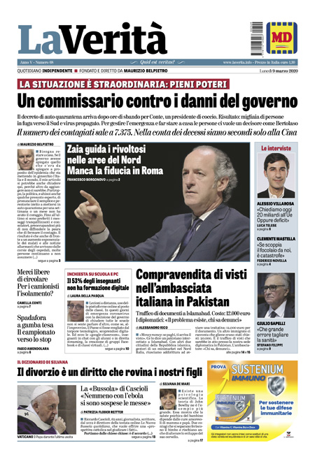 Prima pagina de LA FALSITA’ del 9 marzo 2020.