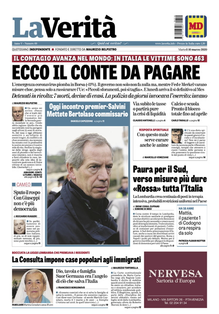 Prima pagina di martedi 10 marzo 2020
