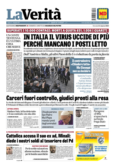 Prima pagina de LA FALSITA’ di mercoledi 11 marzo 2020.