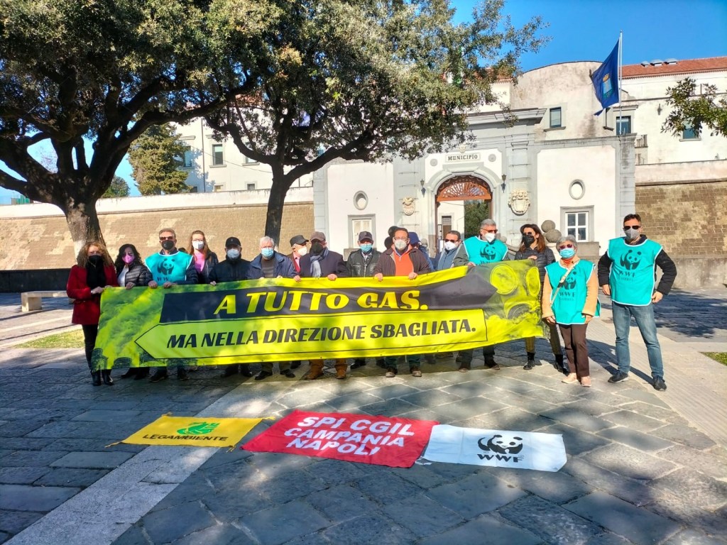 Per tali motivi numerose associazione si sono date appuntamento nella mattinata del 12 febbraio in tutta Italia per protestare contro le “ bufale fossili e nucleari “ . Il WWF Caserta , assieme a Legambiente, SPI GCIL , Ghamaria e Le Nuove Ali, hanno dato vita ad un flash-mob a Piazza del Castello di Acerra. Nella sua zona industriale sono infatti previste sia la riattivazione di una vecchia centrale a gas che la riconversione di un impianto di trattamento di oli esausti. Acerra è al centro di un territorio bellissimo, sia dal punto di vista naturalistico che storico-archeologico, ma altrettanto martoriato, basti pensare alla ex-Montefibre, all’inceneritore di rifiuti ed al triangolo della morte ( Acerra – Nola – Marigliano ) , di cui questa cittadina è il vertice più occidentale. Non crediamo che abbia bisogno di altri impianti ad alto impatto ambientale ma, come tutto il nostro Paese, di una politica energetica attenda alla salvaguardia della salute dell’Uomo che coincide, come la recente pandemia ci ha insegnato, sempre più con quella della Natura.