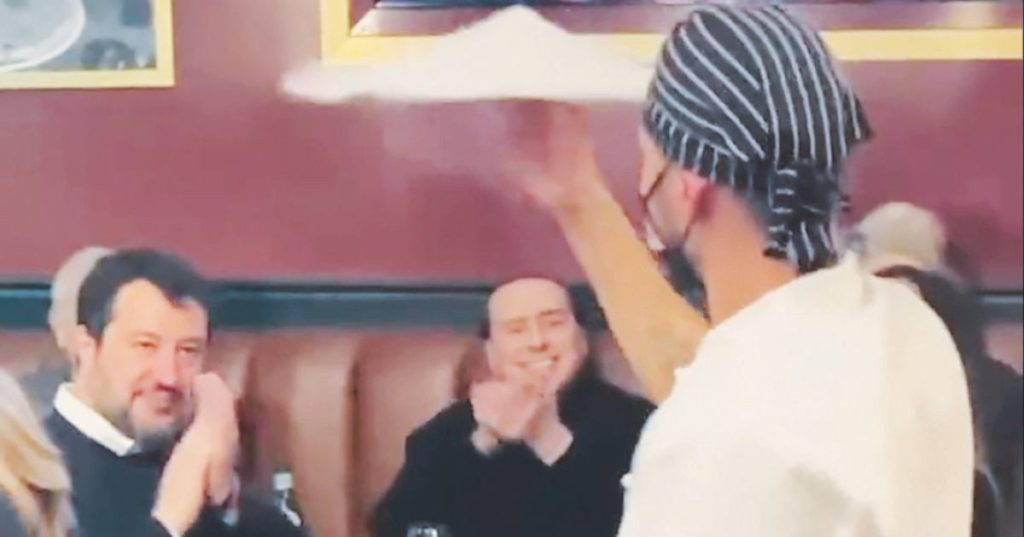 (GIACOMO SALVINI – Il Fatto Quotidiano) – Pizze che roteano, cori da stadio e fazzoletti bianchi agitati a mo’ di panolada. Per una sera, quella di venerdì, le terribili immagini della sofferenza ucraina sono rimaste fuori dal “Crazy Pizza”, il ristorante milanese di Flavio Briatore in via della Moscova che una settimana fa ha aperto una filiale anche nel cuore di Roma, in via Veneto. I partecipanti alla festa venerdì sera erano illustrissimi: Silvio Berlusconi e Matteo Salvini, accompagnati dai rispettivi uomini e donne di fiducia. Una serata di “relax” l’ha definita il leader della Lega che viene ripreso in diversi filmati ad applaudire, a cantare i cori in onore di Berlusconi (“c’è solo un presidente”) e a brindare in compagnia. Foto e video che stridono con l’immagine dismessa, ecumenica, pacifista e pro-immigrazione che il leader della Lega ha voluto dare di sé negli ultimi giorni arrivando addirittura a deporre un mazzo di fiori davanti all’ambasciata ucraina a Roma con tanto di video sui social. Concetto che Salvini ha ribadito anche ieri chiedendo “lo stop delle bombe” e “l’accoglienza” dei profughi.