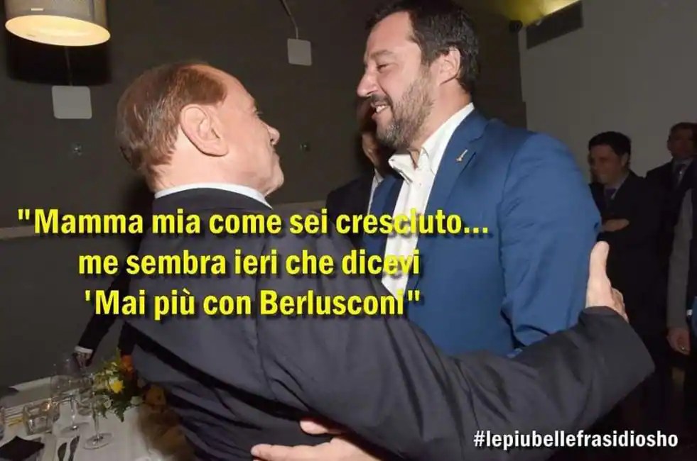 Alle seconde finte nozze di Berlusconi con la Fascina era presente Salvini e assente la Meloni. Un matrimonio finta da una parte e un divorzio finto dall’altra. Tranquilli! Tanto Berlusconi poi la perdona.