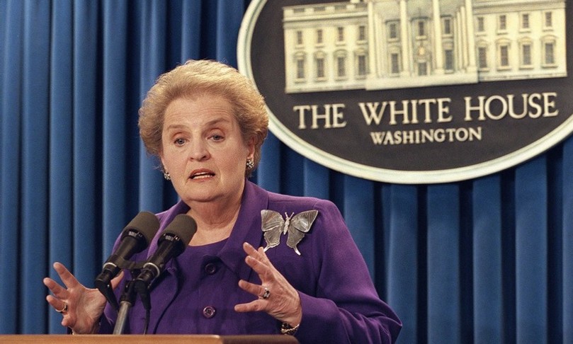 Madeleine Albright, benché democratica, ma forse proprio perché democratica, è stata una delle peggiori guerrafondaie, insieme a quella mezza nera e mezza democratica di Condoleezza Rice, degli ultimi trent’anni. Segretaria di Stato con Bill Clinton, sosteneva quella che in seguito, con George W. Bush, diverrà l’asse centrale della politica yankee: la superiorità morale degli americani, la “cultura superiore” che ha non solo il diritto ma anche il dovere di intromettersi, con le armi, negli affari interni di altri Stati. È lei a imporre il principio dell’“ingerenza umanitaria”.