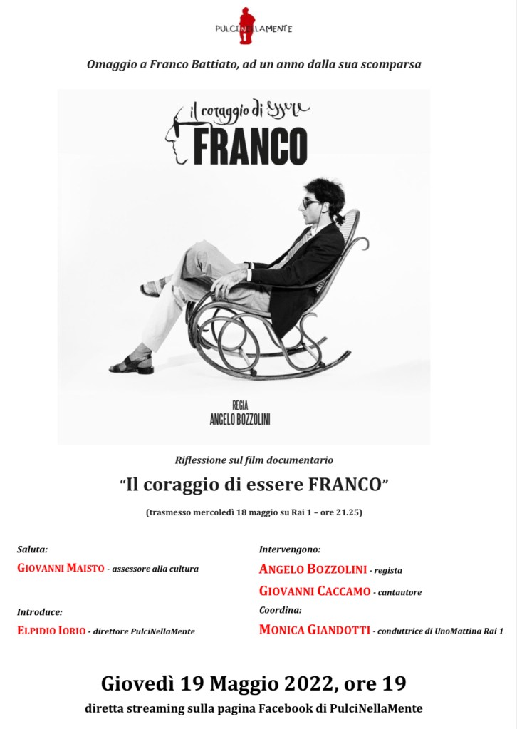 PulciNellaMente, omaggia il grande Franco Battiato, ad un anno dalla scomparsa con un approfondimento sul film documentario di Angelo Bozzolini “Il coraggio di essere FRANCO” che sarà trasmesso stasera su Rai 1.
