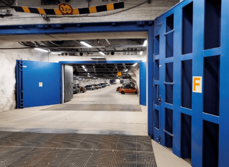 In tempo di pace, calcetto, floorball, un hockey su pista senza pattini né protezioni, e ricovero per auto. In tempo di guerra, rifugio per seimila cittadini, con imponenti doppie porte in acciaio da quindici centimetri pronte a chiudersi e sigillare fuori anche un eventuale attacco chimico.