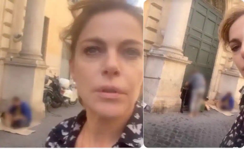 Sette secondi più tardi, l’attrice sta già passando nuovi punti dell’elenco dei rifiuti da proporre ai suoi follower, riprendendo altre bottiglie appoggiate al muro sul ciglio della strada. Come se anche quelle due persone fossero rifiuti fra i rifiuti, gli ultimi cittadini della città additati come degrado da far sparire dalle strade centro della città, da buttare o da nascondere altrove perché poco decorosi.