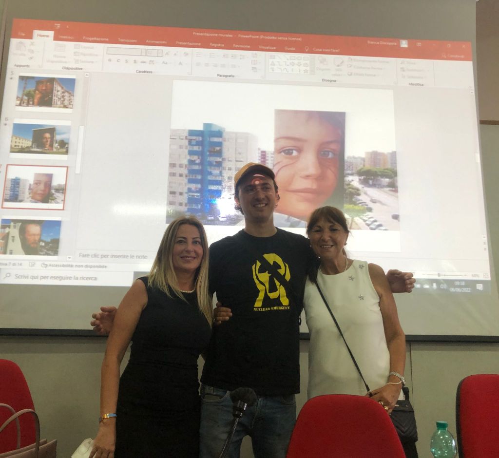 Grande entusiasmo e standing ovation per Jorit oggi nella sala Nitti dell’istituto tecnico Giordani-Striano di Napoli, guidato da Elena de Gregorio, dove il noto street artist ha partecipato alla giornata conclusiva del progetto “Rigth between the eye, guardare l’impegno scolastico con altri occhi”, realizzato dalla sua Fondazione nell’ambito della misura Scuola Viva 4 della Regione Campania.