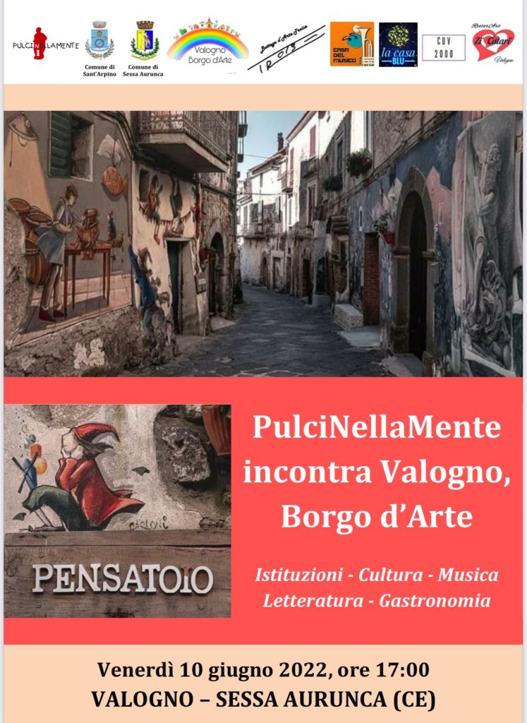 Un incontro nel nome della Bellezza, delle Emozioni, dell’Arte, della Poesia. Venerdì 10 Giugno, a partire dalle 17:30, la Rassegna Nazionale di Teatro Scuola PulciNellaMente incontrerà Valogno, Borgo d’Arte, dando il via ad un intenso e fantastico percorso di condivisione e scambio artistico–culturale tra i due “luoghi” magici.