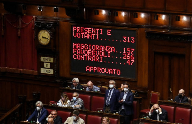 (ilfattoquotidiano.it) – Come annunciato, i deputati del M5S non hanno partecipato al voto finale sul Decreto Aiuti oggi alla Camera. Solo uno degli 86 presenti (18 erano in missione) è rimasto in aula. Il testo è stato comunque licenziato con 266 sì e ora passa in discussione al Senato con deadline per l’approvazione fissata a venerdì. Il capogruppo Davide Crippa ha chiarito la posizione del Movimento. L’oggetto del contendere è, com’è noto, l’inceneritore di Roma, ma anche l’abbandono del superbonus. “Avremmo voluto discuterne in Commissione e poi in Aula – ha detto Crippa –, ma il testo è blindato, il Parlamento non ha toccato palla”. Quelle di oggi sono viste come le prove generali del voto al Senato: il ministro Patuanelli ha già confermato che l’orientamento è non partecipare al voto neanche a Palazzo Madama. In questo caso, però, uscire dall’aula significherà disertare il voto di fiducia, con lo spettro di una crisi. Sullo sfondo resta l’attesa per le risposte di Draghi al decalogo di richieste (nove punti, in realtà) presentato da Conte. E mentre Beppe Grillo oggi è tornato a difendere il reddito di cittadinanza e chiedere il salario minimo (sulla scorta del report dell’Inps sul lavoro in Italia), il Caimano ha fiutato aria di crisi. Berlusconi chiede a Draghi di aprire una verifica di maggioranza e sottrarsi alla logica “ricattatoria” dei 5S e di non aspettare giovedì. Sembra un appello a costituire una nuova maggioranza, con i 5S fuori, il centrodestra prima forza e le truppe di Di Maio a blindare l’esecutivo fino a fine legislatura. Vedremo gli scenari aperti sul Fatto di domani, dove vedremo anche quali sono stati i contenuti del colloquio tra Draghi e Mattarella: dopo la giornata politica, infatti, in serata Draghi è salito al Quirinale.