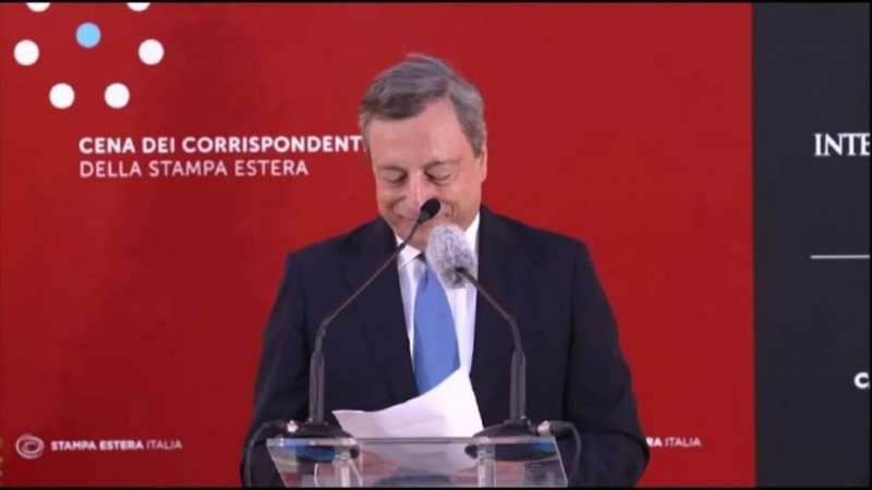 (LaPresse) – Il presidente del Consiglio Mario Draghi inizia con ironia il suo intervento alla cena con i corrispondenti della stampa estera a Roma.
