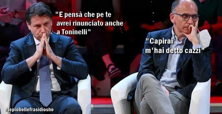 Letta è un coLLione senza futuro. E pensare che quando c’era Zingaretti, si pensava di aver toccato il fondo, poi han voluto andare a ri-chiamare il fessacchiotto che “sereno sereno” (cit.) se ne stava alla Sorbonne de Paris a insegnare non-si-sa-bene-cosa-né-a-chi…