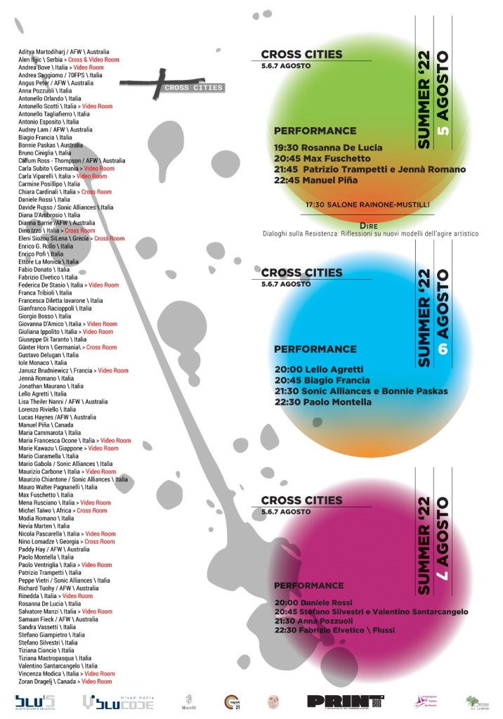 Il progetto Cross Cities costituisce un crocevia di luoghi, artisti ed espressioni diverse e che alimentano un dialogo “incrocio, confronto” di diversità espressive.