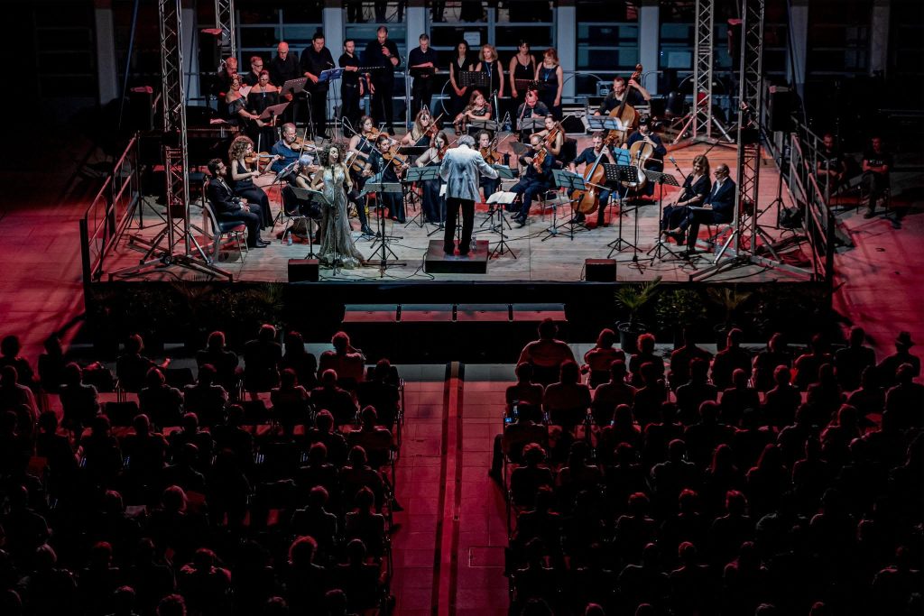 Lunedì è stata la volta di Luna d’Estate, un originale recital-musicale che ha visto oltre quaranta artisti coinvolti, presentandosi come un unicum mondiale per il fatto che le romanze di Tosti, scritte per voce e pianoforte, per la prima volta sono state realizzate in una versione sinfonico corale, concepita da Ernani Catena che ha anche diretto il concerto. Sul palco anche la soprano Chiara Tarquini e il tenore Tommaso Mangifesta, con la partecipazione straordinaria degli attori Debora Caprioglio e Pino Ammendola.