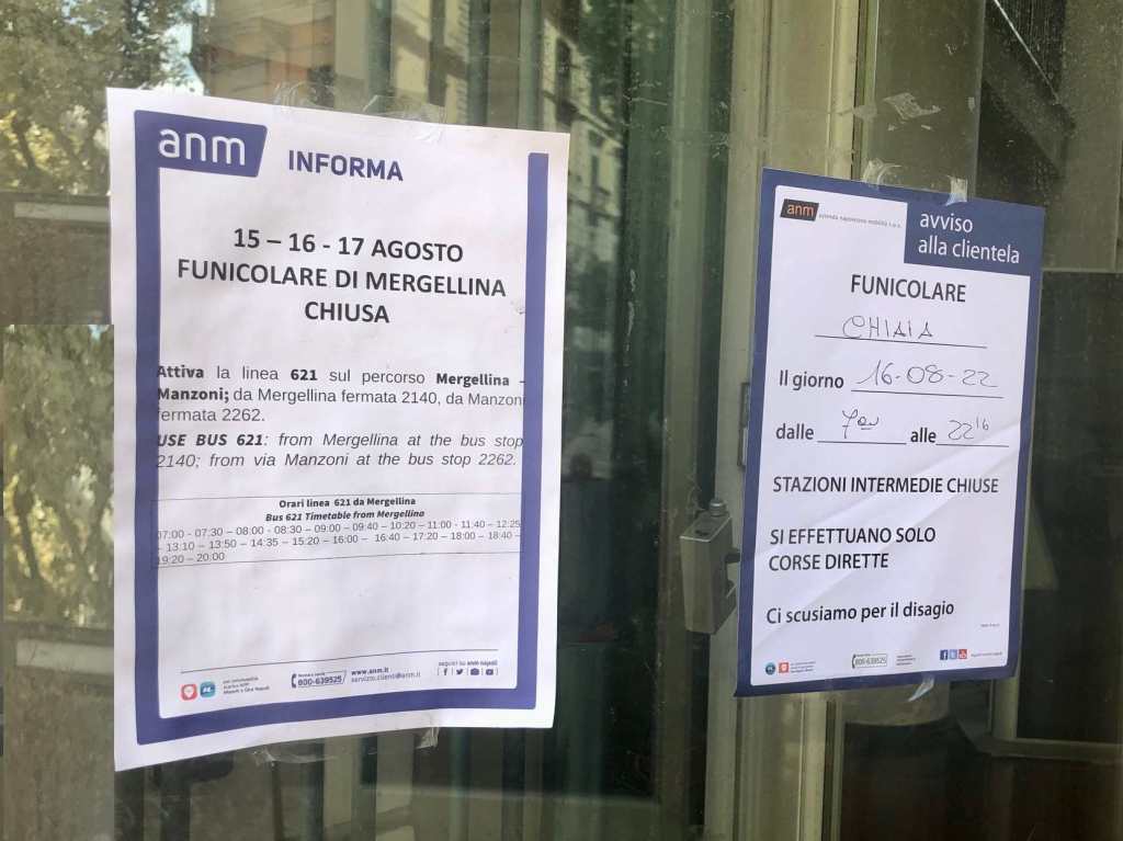 Ferma la funicolare di Mergellina, Chiaia e Montesanto con stazioni intermedie chiuse