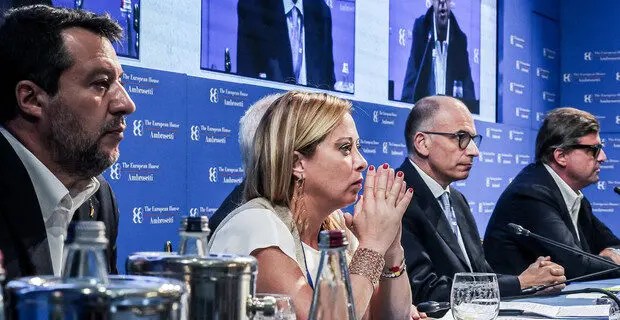 (Marcello Veneziani) – Il nostro sistema politico è un cane a sei zampe come la bestia simbolica della nostra principale azienda di energia. E come il cane a sei zampe, lancia fiamme dalla bocca come un drago. Da una parte Meloni, Salvini e Berlusconi (o la sua controfigura Tajani) e dall’altra, in ranghi sparsi, Letta, Calenda e Conte. Li abbiamo visti tutti insieme (Conte era collegato) a Cernobbio.