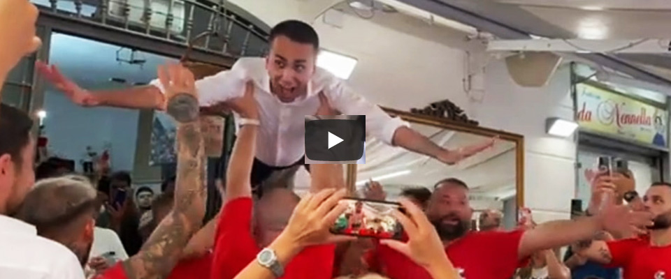 Poi tappa nei Quartieri Spagnoli per un pranzo nella trattoria ‘da Nennella’, molto nota in città per la cucina tipica e per il comportamento di titolari e camerieri che spesso inscenano simpatici siparietti con i clienti. E’ quanto avvenuto anche con Di Maio, che è stato prima coinvolto in un ballo prima sulle note di una canzone neomelodica e poi su quelle di ‘The time of my life’, celebre canzone tratta dalla colonna sonora dell’altrettanto celebre film Dirty Dancing: durante la canzone, i camerieri hanno sollevato Di Maio simulando la celebre scena del ballo acrobatico di Johnny e Baby, protagonisti del film interpretati dagli attori Patrick Swayze e Jennifer Gray, tra gli applausi divertiti dei presenti.