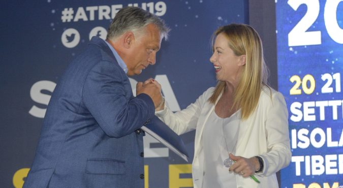 (di Marco Travaglio – Il Fatto Quotidiano) – Prosegue l’astuta campagna di Letta e giornaloni al seguito per dipingere Meloni come una leader pericolosa non perché rappresenta la solita vecchia destra che ci rovinò fra il 2001 e il 2011 (con la breve parentesi 2006-’08), ma perché incarnerebbe una destra nuova, inedita, mai vista. La prova? È pro Orbán come Salvini, mentre B. è sempre stato anti, come lui stesso va ripetendo in questi giorni: “Le politiche di Orbán e la sua visione dell’Europa sono lontane dalle nostre. FI è il garante della linea filo-Nato”. E lo dice da tempi non sospetti. “Per me Orbán ha sempre rappresentato la forza della giovinezza positiva: il peggio che potrebbe capitare all’Ungheria è di non approfittare della sua forza, energia ed entusiasmo… I fatti e le cifre dicono che il governo Orbán ha fatto bene e sarebbe assurdo interrompere questa esperienza. La nostra è un’amicizia antica, l’ho conosciuto da presidente del Milan. Abbiamo una straordinaria sintonia” (28.2.2002). “Orbán è un caro amico e in Ungheria sta facendo benissimo” (1.3.18). Qualche cattivone voleva sbatterlo fuori dal Ppe per le continue violazioni delle libertà, ma l’amico Silvio non sentiva ragioni: “FI non voterà per la tua esclusione, sarebbe un grosso errore politico. Ti ho sempre difeso e sarò sempre dalla tua parte. Ma ti chiedo di accettare alcune delle richieste del Ppe” (8.3.19). “FI e io personalmente ci siamo spesi, anche grazie agli ottimi rapporti con Orbán, per far sì che il Ppe si confermi il primo gruppo al Parlamento europeo” (20.3.19).