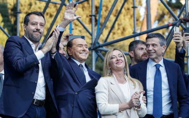(Fabrizio Roncone – il Corriere della Sera) – Backstage, retropalco, piazza del Popolo, comizione di chiusura dei leader del centrodestra, attesa nervosa (per ora c’è solo Maurizio Lupi di «Noi Moderati», stretto nel suo abito blu, furbo, espertissimo: ha troppo mestiere per non capire che certi ritardi rischiano di risultare sgradevoli e che non puoi pensare di stordire i militanti sparandogli a palla le hit di Pupo e dei Ricchi e Poveri).