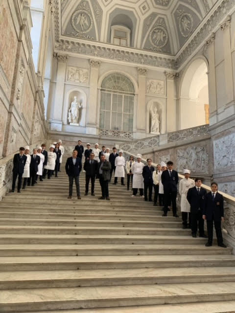 Ieri, 36 alunni dell’Istituto Alberghiero “Villaggio dei Ragazzi”, accompagnati dai docenti Roberto Stracquadaini, Ciro Varriale e Francesco Angioni, hanno partecipato alla Convention Mondiale del Panettone che si è tenuta al Palazzo Reale di Napoli. L’evento, che è stato organizzato dall’Accademia dei Maestri del Lievito Madre e del Panettone Italiano, presieduta da Claudio Gatti, e patrocinato dalla Regione Campania e da partner privati, avrà un seguito nel Campionato Mondiale a squadre che si terrà nel 2023: in palio ci sarà il titolo di miglior panettone tradizionale. La regia della manifestazione è stata curata in modo impeccabile dall’ente di Formazione Dolce & Salato di Maddaloni dello chef Giuseppe Daddio e del Maestro Pasticcere “Accademico” Aniello di Caprio. Per l’occasione, i “futuri” chef del Villaggio, oltre ad occuparsi del servizio ricevimento, hanno potuto apprendere da vicino alcuni dei concetti chiave di un’arte dolciaria che riesce a coniugare tradizione e innovazione, rafforzando una serie di conoscenze indispensabili per poter entrare nel mondo della pasticceria. Ottimo anche il servizio di cucina e sala prestato dagli stessi studenti alla cena di gala serale organizzata presso il Casale Rosamèlia di Maddaloni da Daddio e da Di Caprio. “L’obiettivo – ha commentato Felicio De Luca – Commissario straordinario del “Villaggio dei Ragazzi”, è quello di formare, anche attraverso la partecipazione ad eventi del genere, figure professionali che uniscono alla sicura padronanza delle materie di settore studiate a scuola importanti competenze riguardanti tutto ciò che è settore alberghiero. Il mio plauso va ai nostri ragazzi che, grazie anche alla guida dei docenti, sono stati in grado di intervenire con competenza nei diversi ambiti delle attività di cucina e di ricevimento, riuscendo a gestire tutti i servizi correlati agli eventi”. La kermesse dolciaria, che ha visto come protagonisti Maestri lievitisti, istituzioni e industriali produttori del dolce italiano più famoso al mondo, è stata moderata dalla conduttrice televisiva ed ex politica italiana Nunzia Di Girolamo. Presenti, tra gli altri, il direttore di Palazzo Reale Mario Epifani, l’Assessore alle Politiche giovanili e al lavoro del Comune di Napoli Chiara Marciani, l’Assessore al Turismo della Regione Campania Felice Casucci, l’Assessore all’Agricoltura della Regione Campania Nicola Caputo, il direttore dell’Agenzia Regionale Campania del turismo Luigi Raia, la professoressa dell’Università Federico II° di Napoli, presidente della Società italiana Endocrinologia, Annamaria Colao, il Magnifico Rettore dell’Università Federico II° di Napoli Matteo Lorito, nonché i Maestri Lievitisti Walter Tagliazucchi, Francesco Elmi, Manuele Lenti, Maurizio Buonanomi, Ezio Marinato, Stefano Laghi, Aniello Di Caprio e Oscar Pagani.