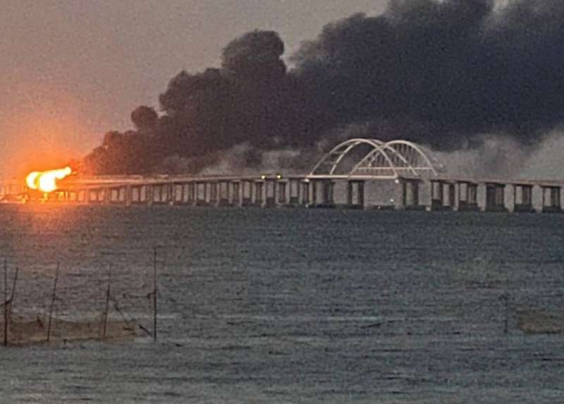 La circolazione dei veicoli attraverso il ponte Kerch, che collega la Russia alla Crimea, è stata sospesa a causa dell’incendio. Il personale del ministero russo per le emergenze e il servizio stradale stanno lavorando sul posto per contenere le fiamme. Inaugurato nel 2018, il ponte è lungo 19 chilometri ed è il più lungo d’Europa.