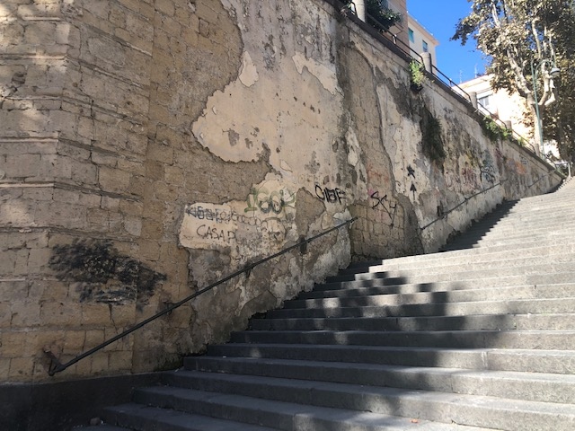 ” Tempo addietro – ricorda Capodanno – lungo le rampe furono posti dei transennamenti provvisori, a ragione del pericolo determinato dalla caduta degli intonaci. Si penso che tali transennamenti fossero propedeutici al risanamento delle murature di entrambe le rampe, attraverso la spicconatura del restante intonaco ammalorato, il suo rifacimento e tutte le restanti opere necessarie a restituire piena agibilità e decoro alle antiche scale in piperno. Invece il transennamento è scomparso, senza che le opere manutentive per ripristinare i muri siano stati effettuati “.