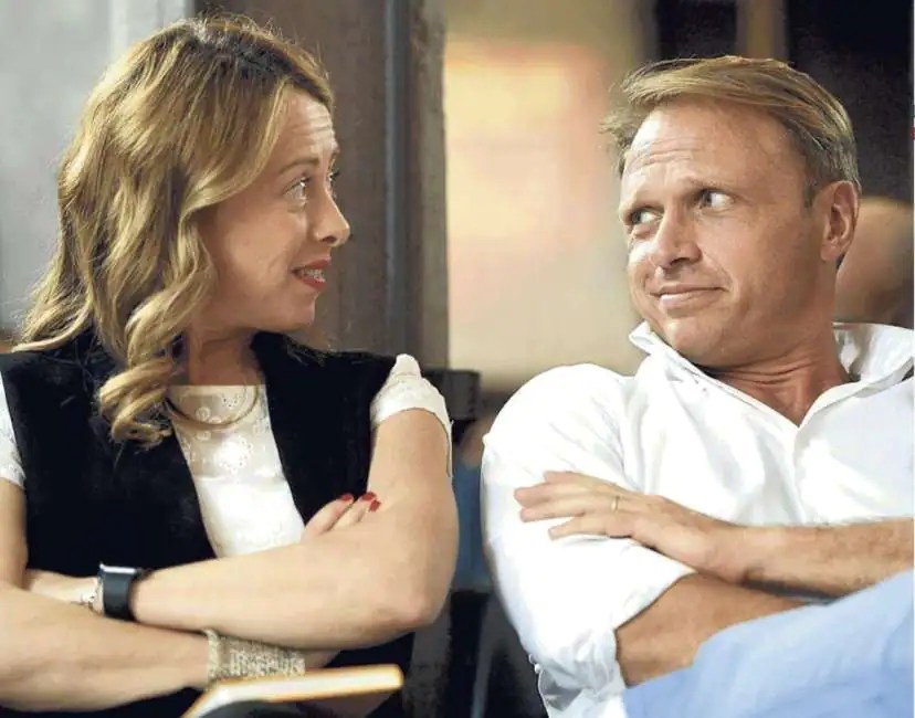 E chissà quant’ è grande la famiglia- nazione della neofita affamata di potere Giorgia Meloni che ha portato al governo pure Paolo Zangrillo, ministro della Pubblica amministrazione, il grande nome a sorpresa del suo governo. I cronisti si sono guardati: parente? Fratello. Eh già, nel familismo c’è pure il «lei non sa chi è mio fratello», che è il titolo di un magnifico libro di Franco Bungaro e Vincenzo Jacomuzzi, pubblicato dalla Sei. Si comincia dalla A di Alighieri. Dante? No, Francesco, che qualche ragione ce l’aveva per dire: «Lei non sa chi è mio fratello ». j Insieme Giorgia Meloni con il cognato Francesco Lollobrigida, neoministro dell’Agricoltura e della Sovranità alimentare.