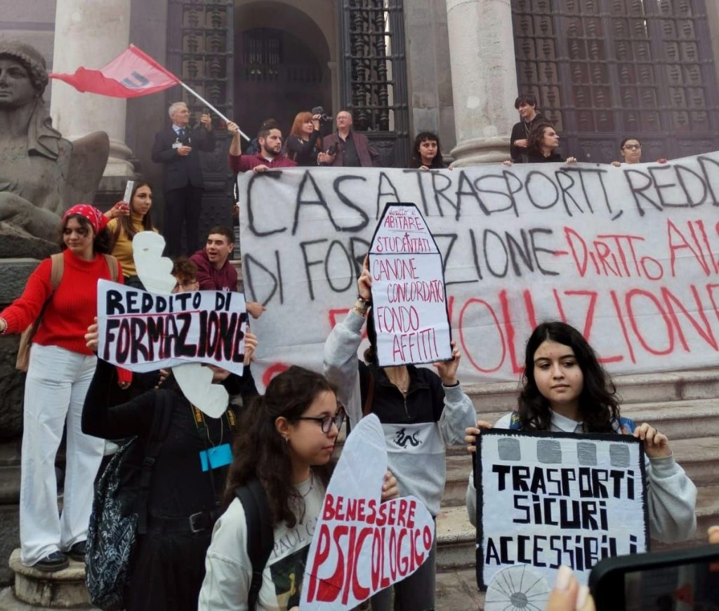 Il corteo è terminato sotto la sede della Regione Campania dove una delegazione è stata ricevuta dall’Assessora Fortini che si è impegnata a convocare la Conferenza Regionale sul Diritto allo Studio, prevista dall’apposita legge del 2005 e mai convocata. Sarà quella l’occasione in cui trattare anche questioni strutturali connesse al diritto allo studio universitario.