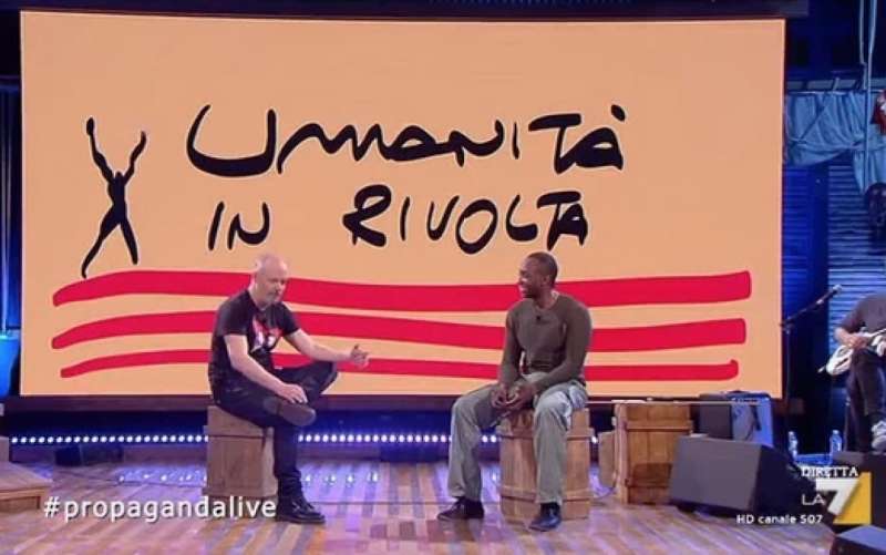 “Stiamo parlando comunque di una persona che hanno incontrato tutti, anche quello più a sinistra di tutti, Papa Francesco… stiamo parlando di un fenomeno di questa portata…”, dice Bianchi, sottolineando che Propaganda ha una prevalente funzione di racconto, più che di investigazione. E proprio per questo ci tiene a riproporre il filmato della prima volta in cui incrociò Aboubakar, nella Piana di Gioia Tauro, all’inizio del giugno 2018, quando il Governo Conte 1 aveva appena giurato, quando il neoministro dell’Interno Salvini aveva detto che per i migranti era “finita la pacchia”, quando i braccianti protestavano per la morte di Soumayla Sacko, “ucciso da un italiano” – ricorda Zoro – perché sorpreso a rubare delle lamiere con cui costruire una capanna che non rischiasse di andare a fuoco come successo non molto tempo prima ad altri braccianti. Quel primo intervento pubblico, immortalato da Zoro sul posto, svelò un uomo dalla proprietà di linguaggio impressionante per la media nazionale -intesa come autoctona – e una presenza politica notevole. Da lì l’ospitata a Propaganda e l’attenzione dei media.