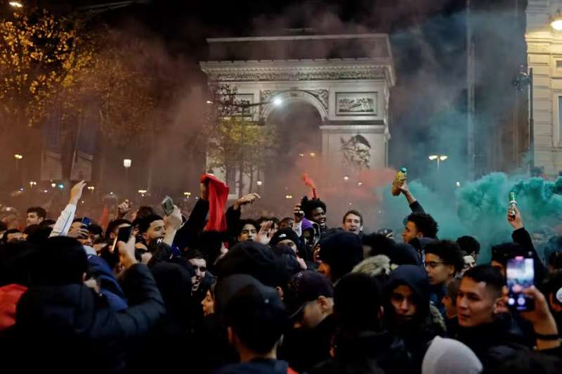 Domenica, per la qualificazione ai danni di Portogallo e Inghilterra, i tifosi di Marocco e Francia hanno festeggiato insieme sugli Champs-Elysées. Si trattava di 20.000 persone, nulla a che vedere con il “milione di tifosi” che invase la celebre via nel 1998 per la prima vittoria dei bleus ai mondiali. Ma anche con 20.000 persone unite in un abbraccio con le bandiere che sventolavano insieme, sono finite in stato di fermo un centinaio di individui soltanto a Parigi, dove ormai disordini e tafferugli con la polizia si verificano ad ogni tipo di manifestazione, di protesta o di festa.