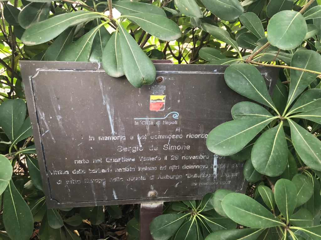 “ Nel giorno della memoria, che cade il 27 gennaio, a Napoli, oltre a mettere in campo nuove iniziative, sarebbe il caso di onorare quelle già poste in essere negli anni scorsi – esordisce Gennaro Capodanno, presidente del Comitato Valori collinari, già presidente della Circoscrizione Vomero -. Mi riferisco, in particolare, al roseto e alla targa che vennero collocati dall’amministrazione comunale partenopea nel novembre 2007, in un’aiuola del parco Mascagna, già conosciuto come giardini di via Ruoppolo, in occasione del settantesimo anniversario della nascita di Sergio De Simone, l’unico bambino italiano dei 20 che furono uccisi nella scuola di Bullenhuser Damm, nato a Napoli, nel quartiere Vomero, il 29 novembre 1937, al quale peraltro il Comune di Segrate ha dedicato da tempo un auditorium ed un giardino “.