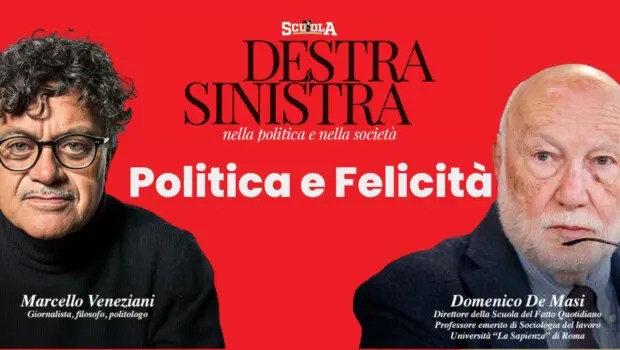 (Marcello Veneziani) – La scuola del “Fatto quotidiano” ha voluto chiudere domenica scorsa il suo ciclo di incontri tra autori di destra e di sinistra sul tema della felicità. Si confrontavano al cinema Farnese in Roma Domenico De Masi, autore di un saggio, La felicità negata (ed. Einaudi) ed io, autore di Scontenti (ed. Marsilio). Il filo conduttore era il rapporto tra politica e felicità, visto da destra e da sinistra. Ho contestato in premessa il tema, ovvero il legame tra politica e felicità e tra democrazia e felicità.